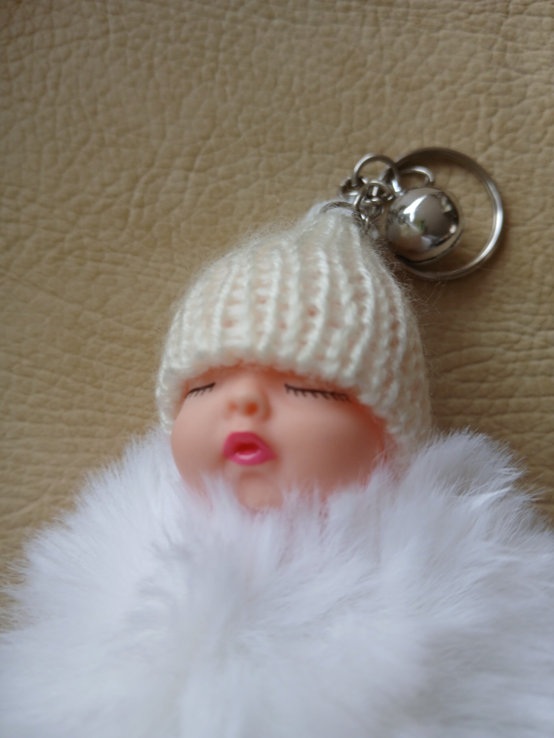 Witte fluffy sleutelhanger